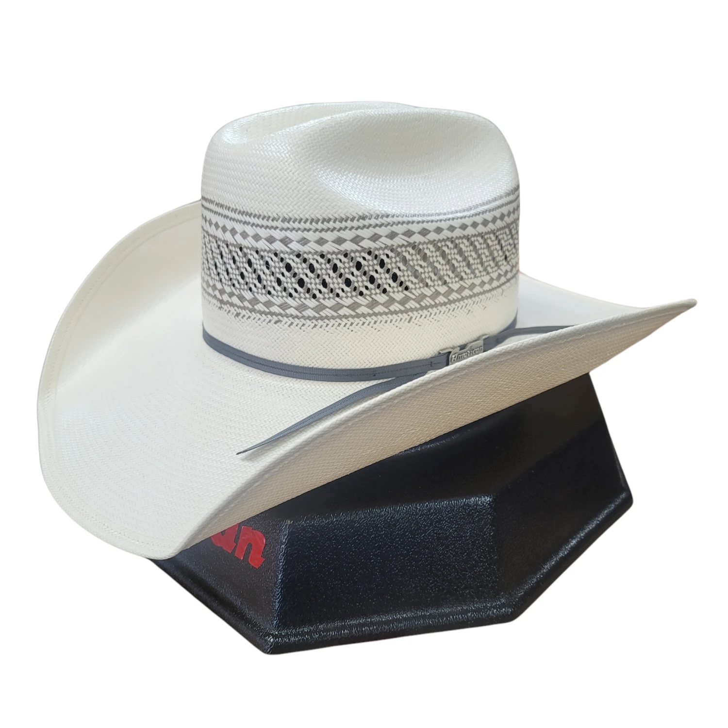 American Hat Company brings us this straw hat with grey band and perfect ventilation.