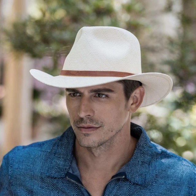 The Kent is another magnificent hat from the Austral Hats collection. It comes in a tasteful beige that is made from 100% Toquilla straw. Details include a teardrop style crown with slightly upturned brims. The crown also features a brown leather band with a tie string detail on the side that gives the hat some character. This is a high-quality hat that guarantees great comfort without compromising on style. It’s a remarkable accessory that will effortlessly exceed your expectations.
