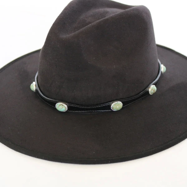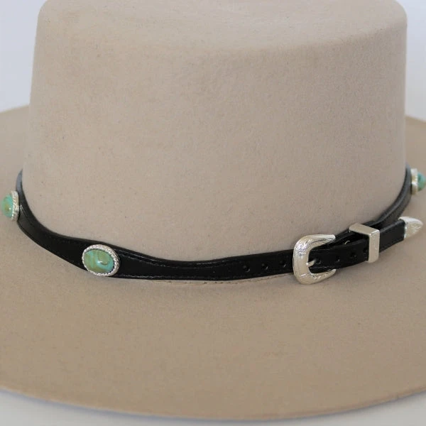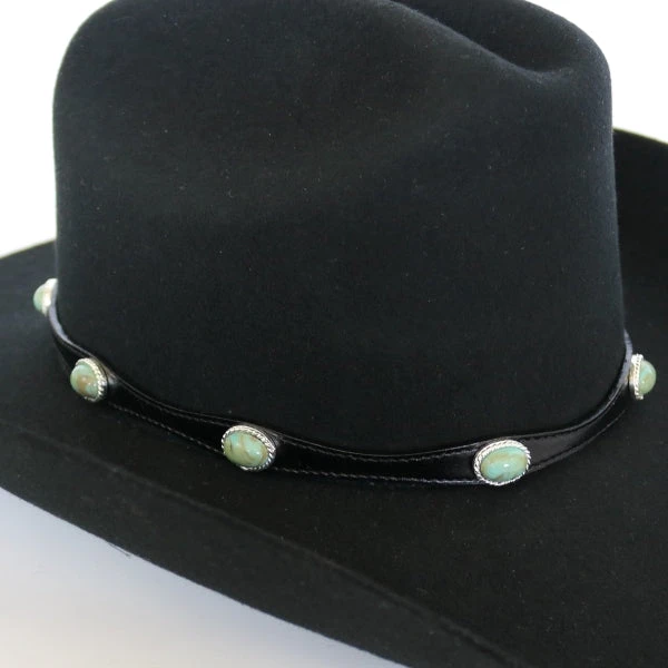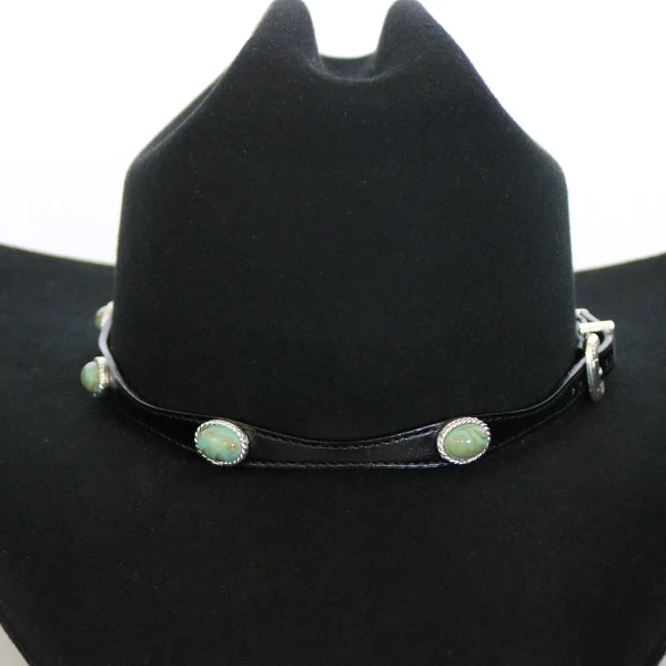 Genuine Leather hat band with turquoise colored stones.