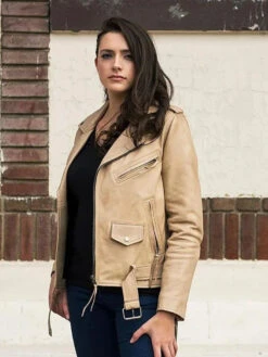 This is a stunning vintage cream lamb jacket from scully leather with front, back and sleeve fringe. Embellished with turquoise and silver bead florets and accented in silver bead vining. Turquoise pick stitch also highlights the jacket. It has a hook and eye closure and is lined in polyester.