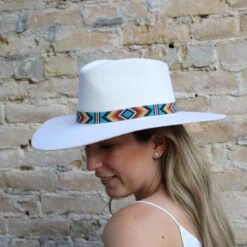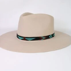 A great western hatband for the fashionable cowboy. This very unique hatband by M&F Western Products features a fancy embroidered aztec print. This style hatband uses a belt style adjustment with a rounded silver buckle.