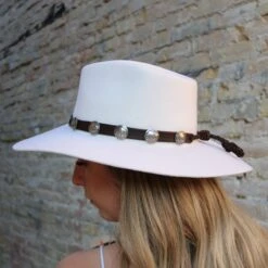 Spruce up your favorite hat with this genuine leather hatband by M&F Western Products. Genuine leather with silver oblong nail heads and gold and silver star conchos. Buckle closure.