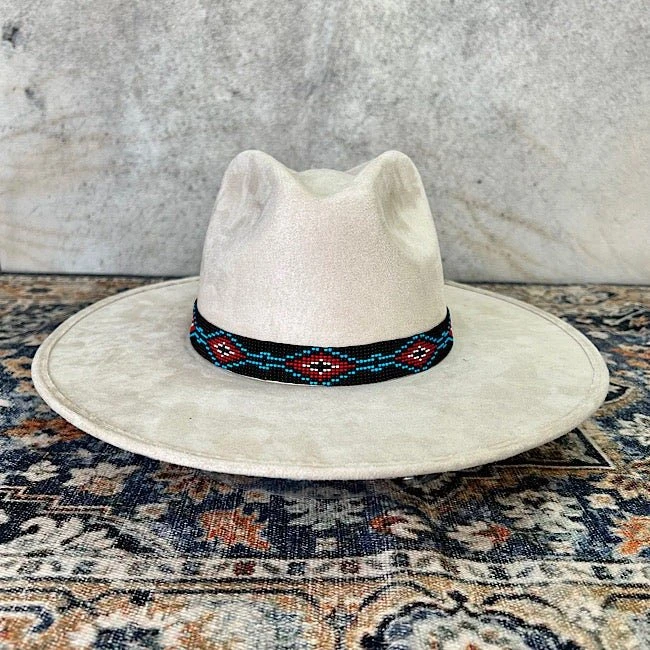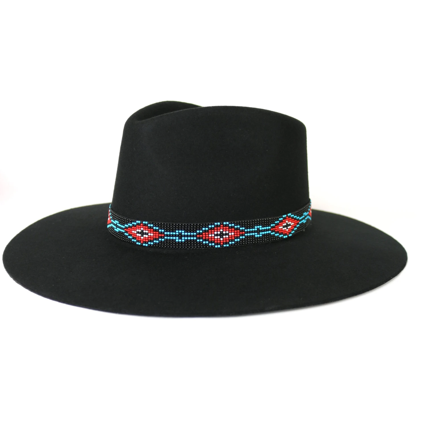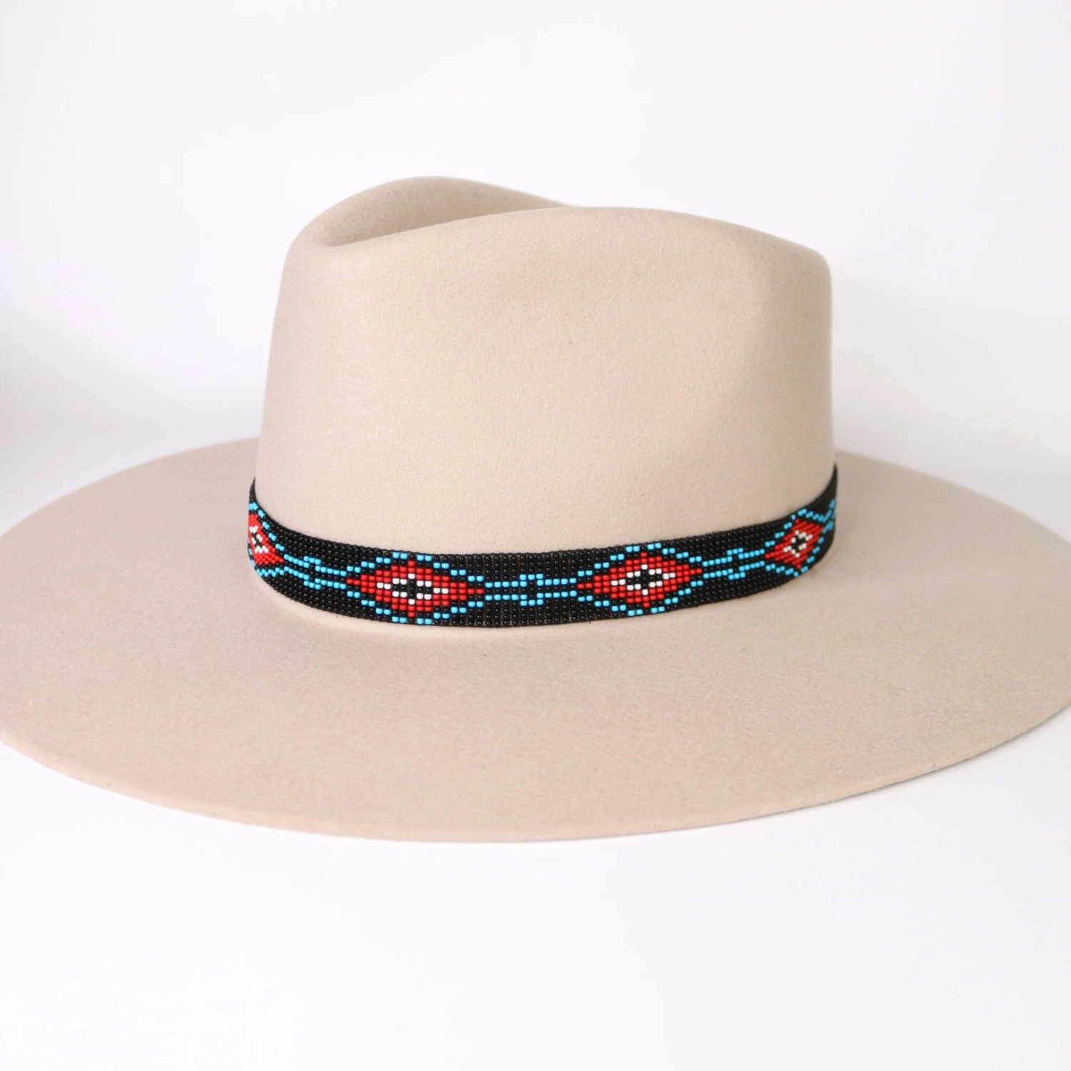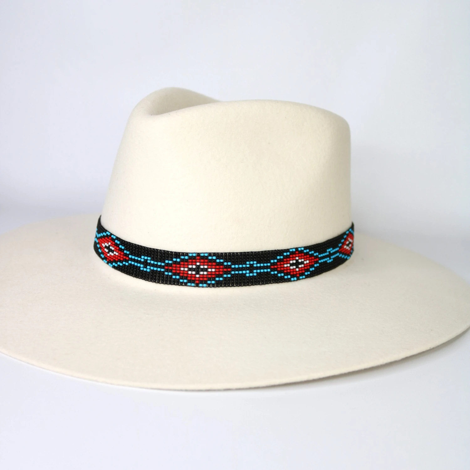 Dress up your favorite hat with this Twister beaded hatband by M&F Western Products. Stretch to fit in a southwestern pattern of black, blue, red and white beads.