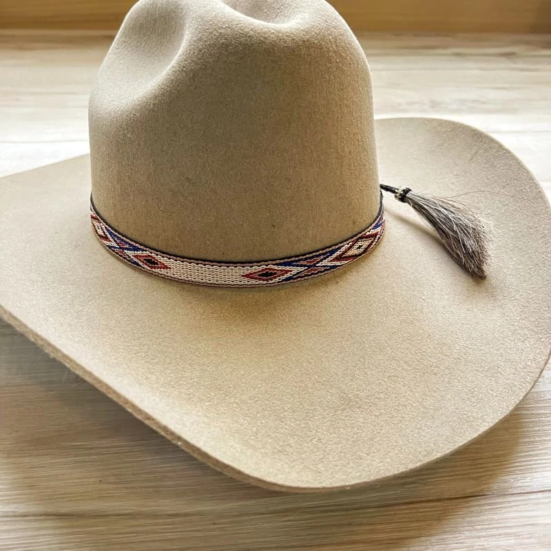 These western hatbands will definitely set off the western look on your favorite hat. Dress it up with this ½” tapestry hatband. The slip knots with end tassels easily adjusts for a snug fit.